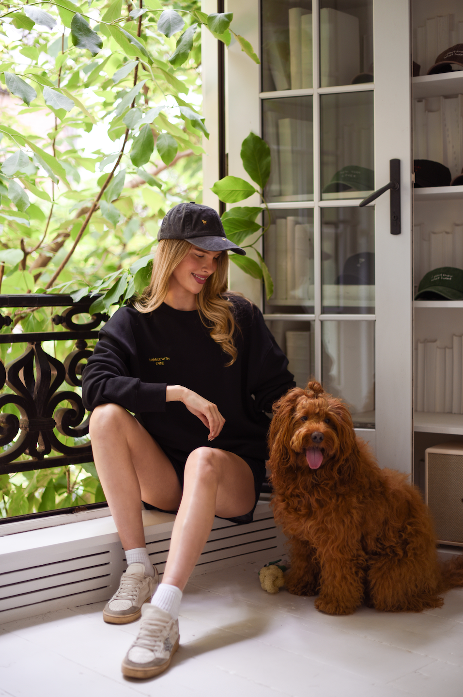 Premium quality casual crewneck featuring handmade "Handle With Care" embroidery.