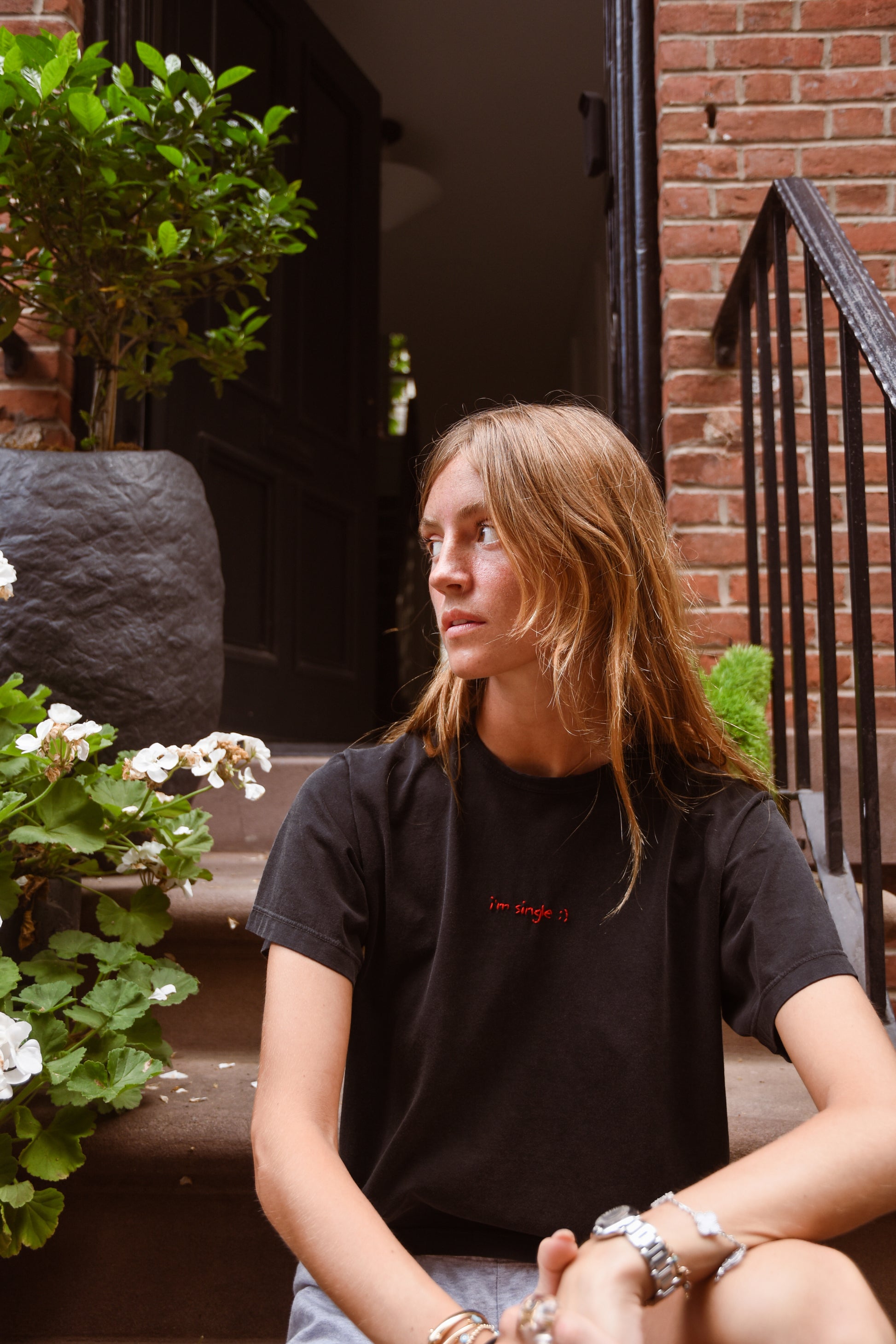 Casual Crop Top Tee with handmade Embroidery "I am single".